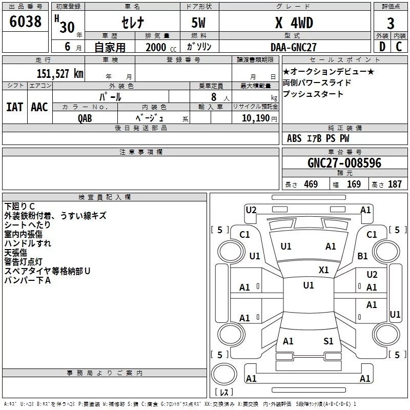 Nissan SERENA с аукциона Японии TAA Hokkaido лот № 6038