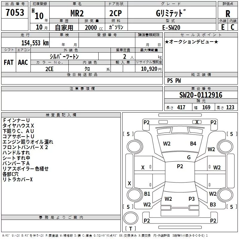 Toyota MR2 с аукциона Японии TAA Hokkaido лот № 7053