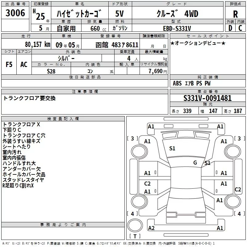 Daihatsu HIJET VAN с аукциона Японии TAA Hokkaido лот № 3006