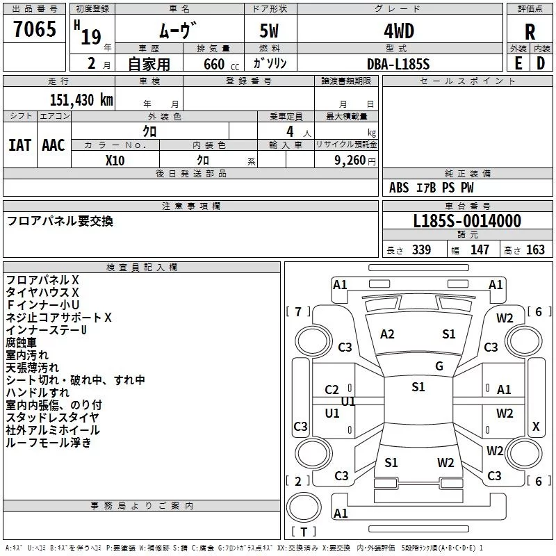 Daihatsu MOVE с аукциона Японии TAA Hokkaido лот № 7065