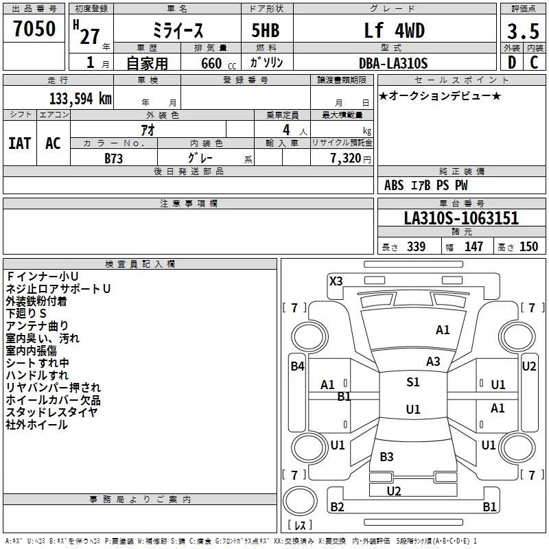 Daihatsu MIRA E S с аукциона Японии TAA Hokkaido лот № 7050