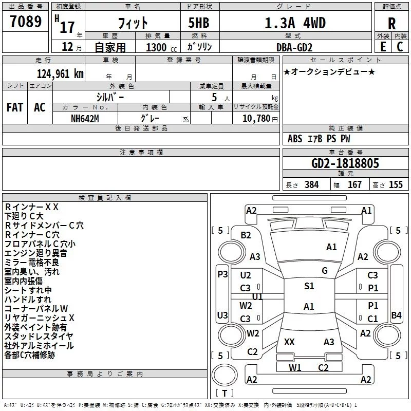 Honda FIT с аукциона Японии TAA Hokkaido лот № 7089