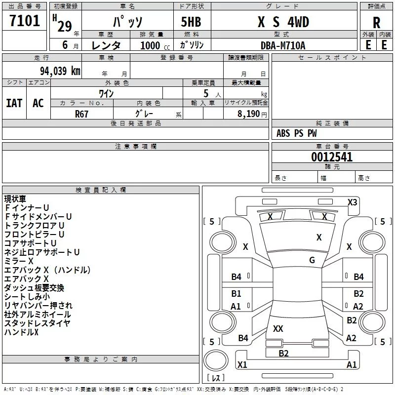 Toyota PASSO с аукциона Японии TAA Hokkaido лот № 7101