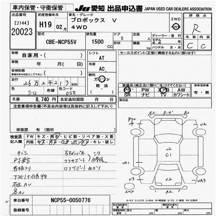 Toyota PROBOX с аукциона Японии JU Aichi лот № 20023