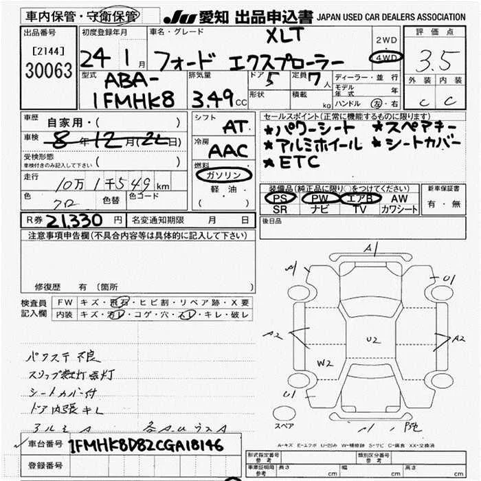 Ford EXPLORER с аукциона Японии JU Aichi лот № 30063