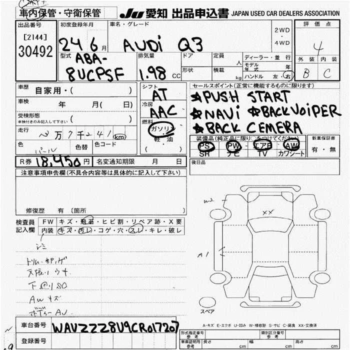Audi Q3 с аукциона Японии JU Aichi лот № 30492