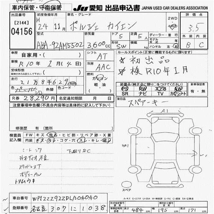 Porsche CAYENNE с аукциона Японии JU Aichi лот № 4156