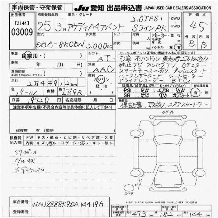 Audi A4 с аукциона Японии JU Aichi лот № 3009