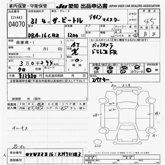 Volkswagen THE BEETLE с аукциона Японии JU Aichi лот № 4070