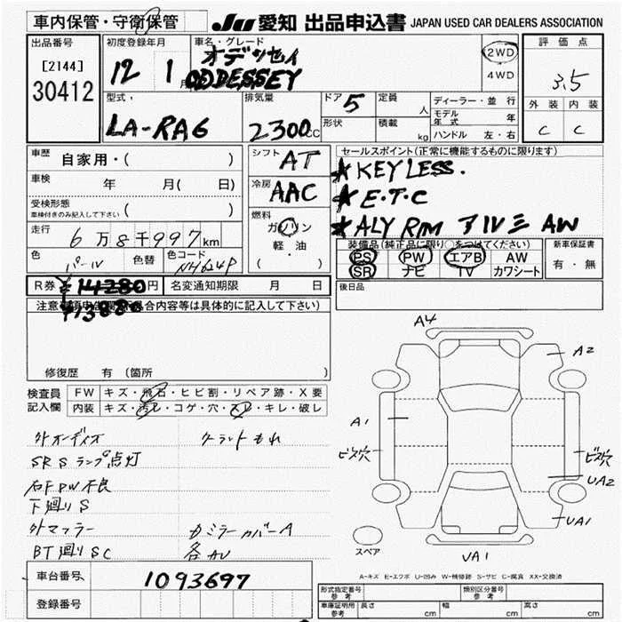 Honda ODYSSEY с аукциона Японии JU Aichi лот № 30412