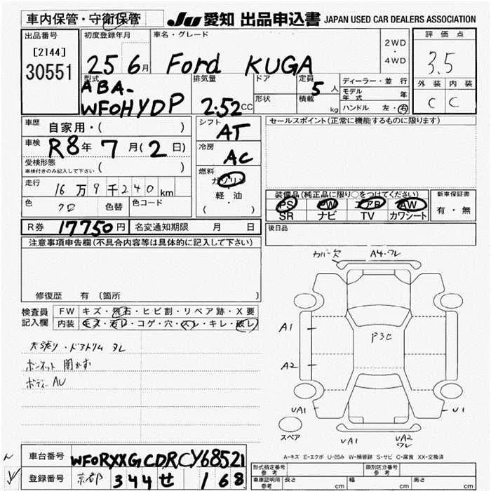 Ford KUGA с аукциона Японии JU Aichi лот № 30551