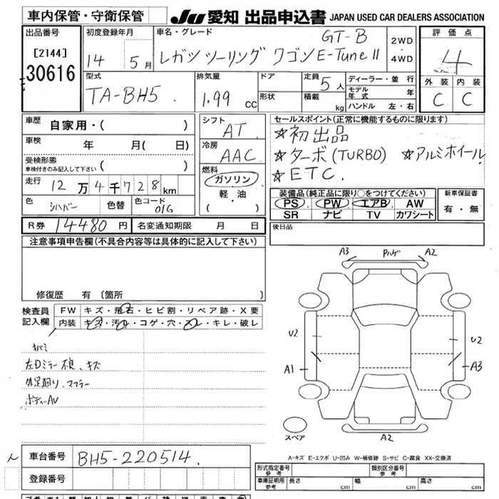 Subaru LEGACY с аукциона Японии JU Aichi лот № 30616