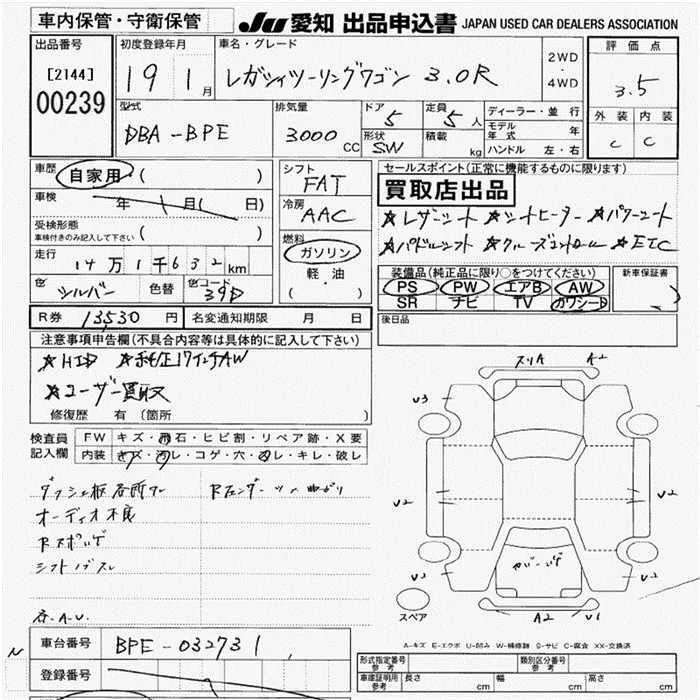 Subaru LEGACY с аукциона Японии JU Aichi лот № 239