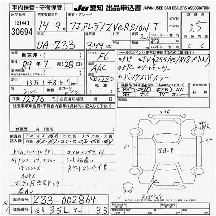 Nissan FAIRLADYZ с аукциона Японии JU Aichi лот № 30694