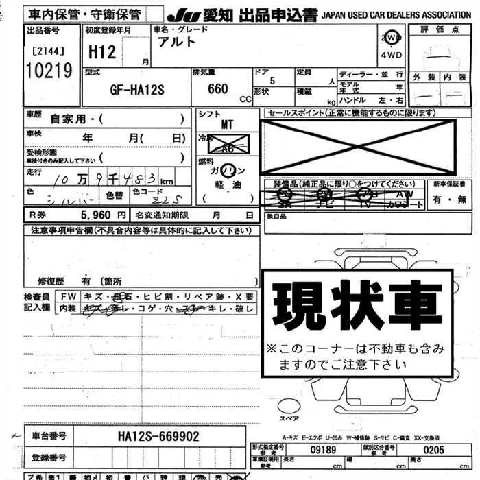 Suzuki ALTO с аукциона Японии JU Aichi лот № 10219