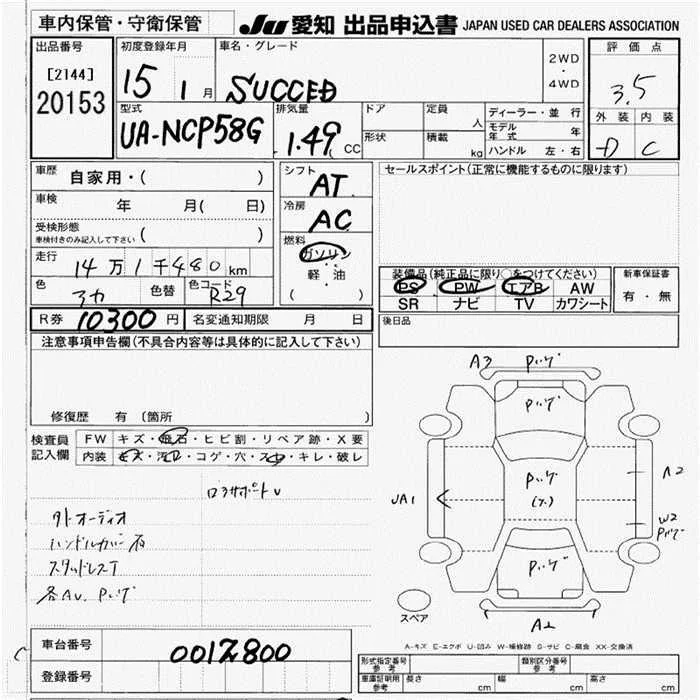 Toyota SUCCEED с аукциона Японии JU Aichi лот № 20153
