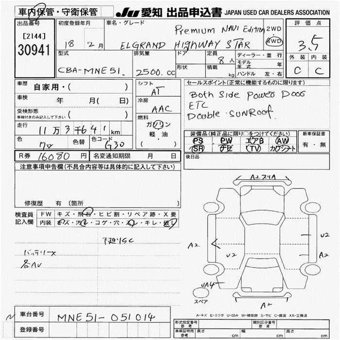 Nissan ELGRAND с аукциона Японии JU Aichi лот № 30941