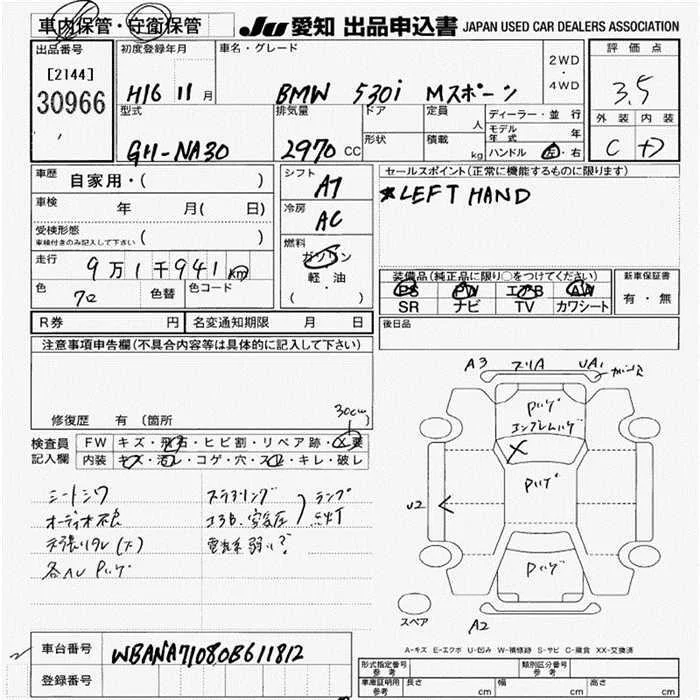 BMW 5-Series с аукциона Японии JU Aichi лот № 30966
