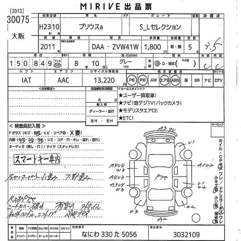 Toyota PRIUS ALPHA с аукциона Японии MIRIVE Osaka лот № 30075