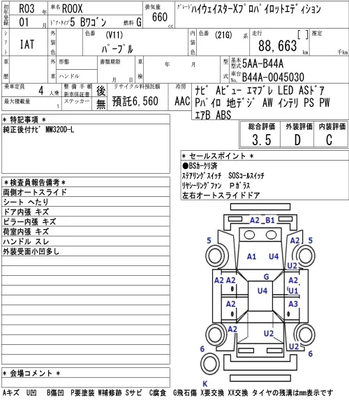 Nissan ROOX с аукциона Японии NAA Osaka лот № 3041