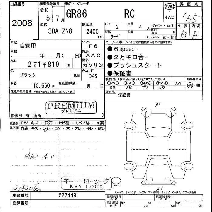 Toyota GT 86 с аукциона Японии JU Fukushima лот № 2008