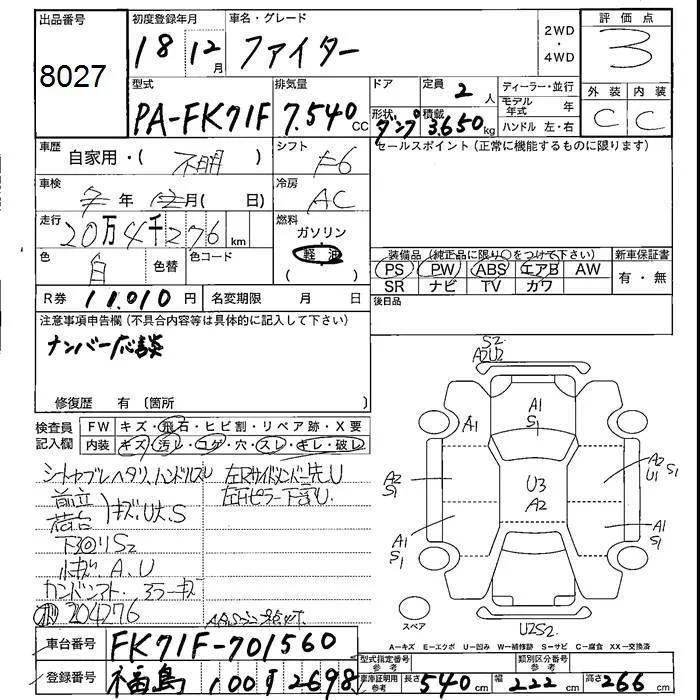 Mitsubishi FUSO FIGHTER с аукциона Японии JU Fukushima лот № 8027