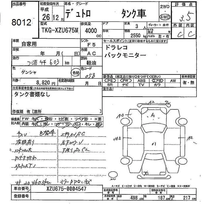 Hino DUTRO с аукциона Японии JU Fukushima лот № 8012