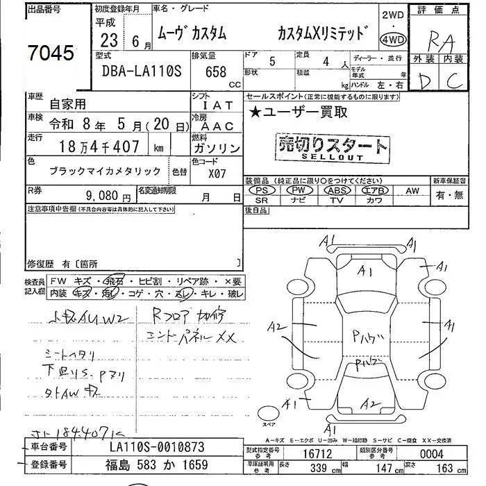 Daihatsu MOVE с аукциона Японии JU Fukushima лот № 7045