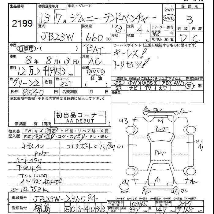 Suzuki JIMNY с аукциона Японии JU Fukushima лот № 2199