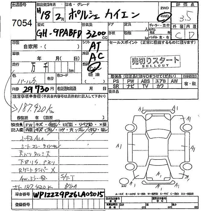 Porsche CAYENNE с аукциона Японии JU Fukushima лот № 7054