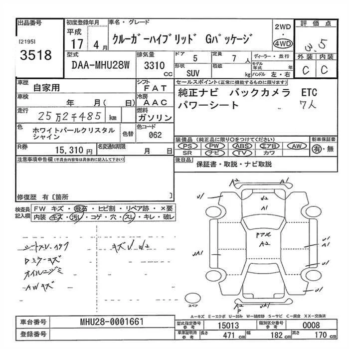 Toyota KLUGER с аукциона Японии JU Gunma лот № 3518