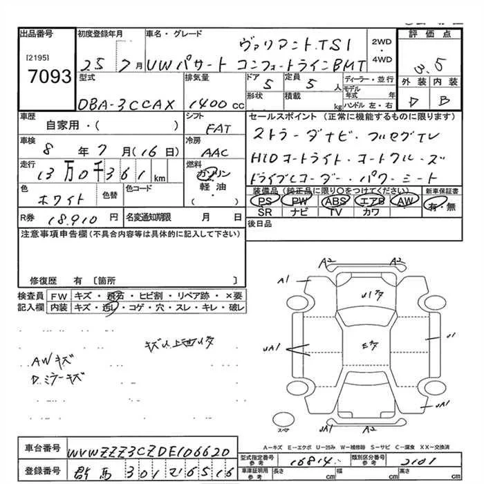 Volkswagen PASSAT VARIANT с аукциона Японии JU Gunma лот № 7093