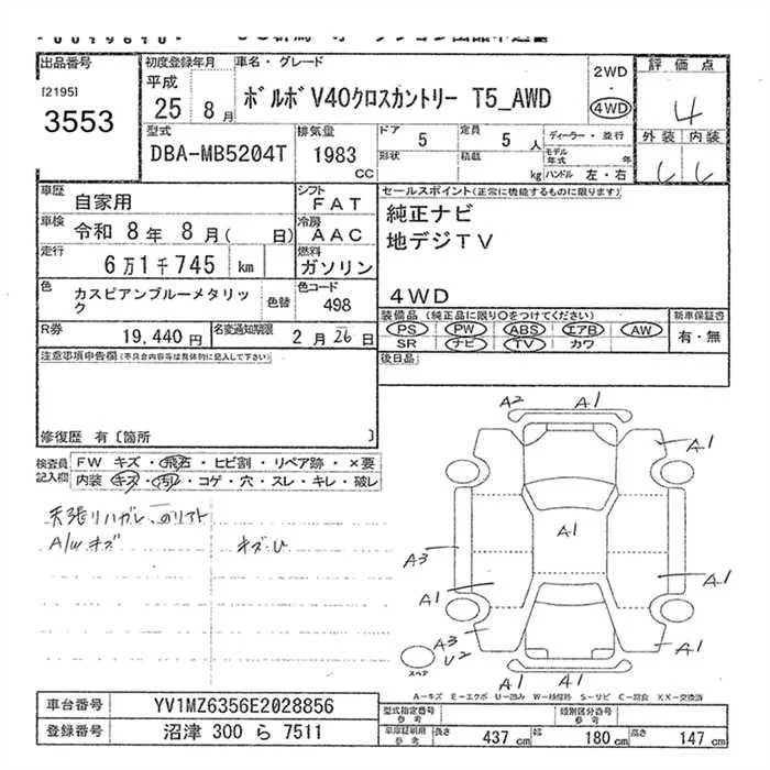 Volvo V40 с аукциона Японии JU Gunma лот № 3553