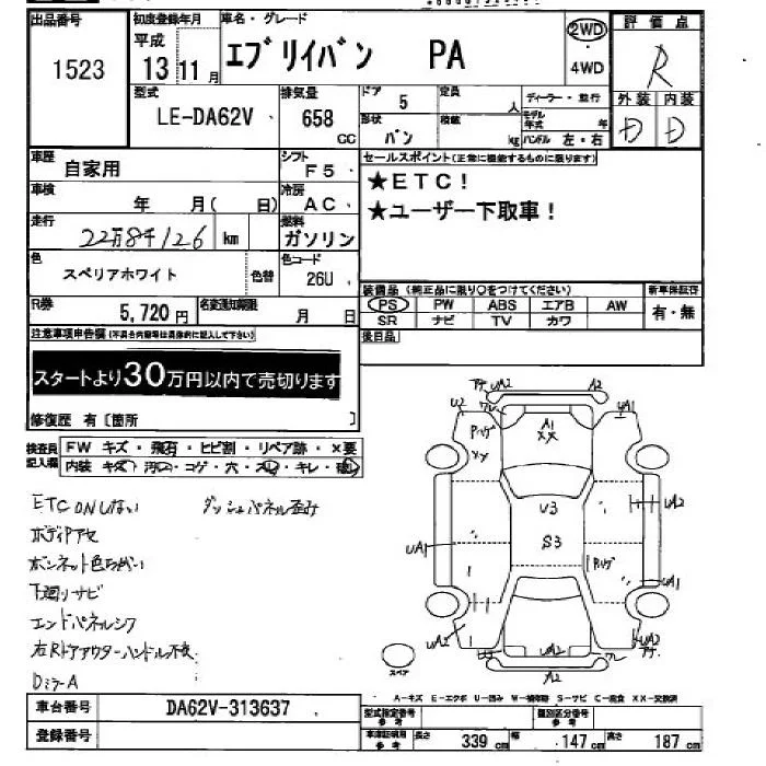 Suzuki EVERY с аукциона Японии JU Hiroshima лот № 1523