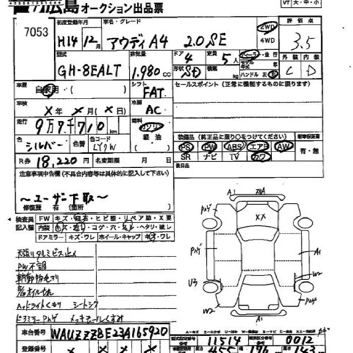 Audi A4 с аукциона Японии JU Hiroshima лот № 7053