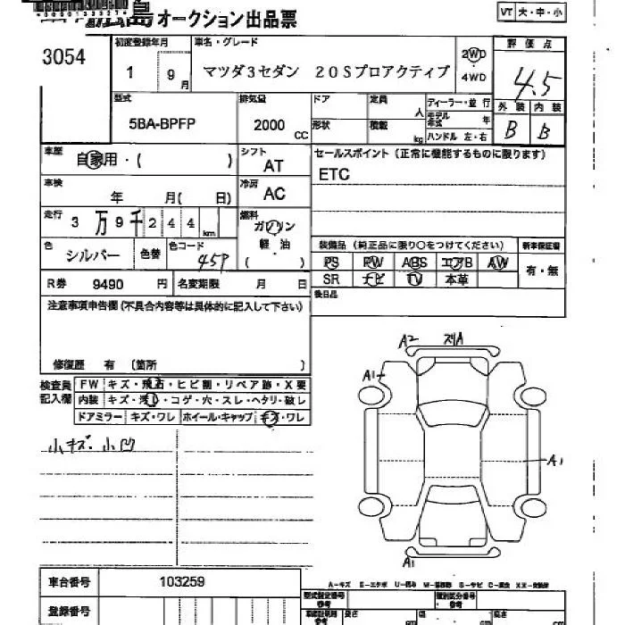 Mazda MAZDA3 с аукциона Японии JU Hiroshima лот № 3054