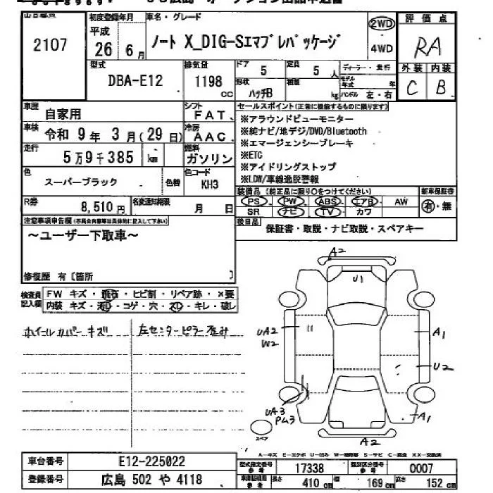 Nissan NOTE с аукциона Японии JU Hiroshima лот № 2107