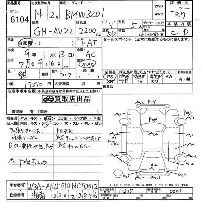 BMW 3-Series с аукциона Японии JU Kanagawa лот № 6104