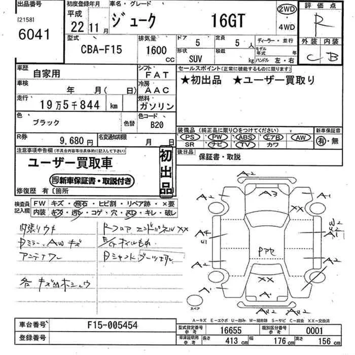 Nissan JUKE с аукциона Японии JU Kanagawa лот № 6041
