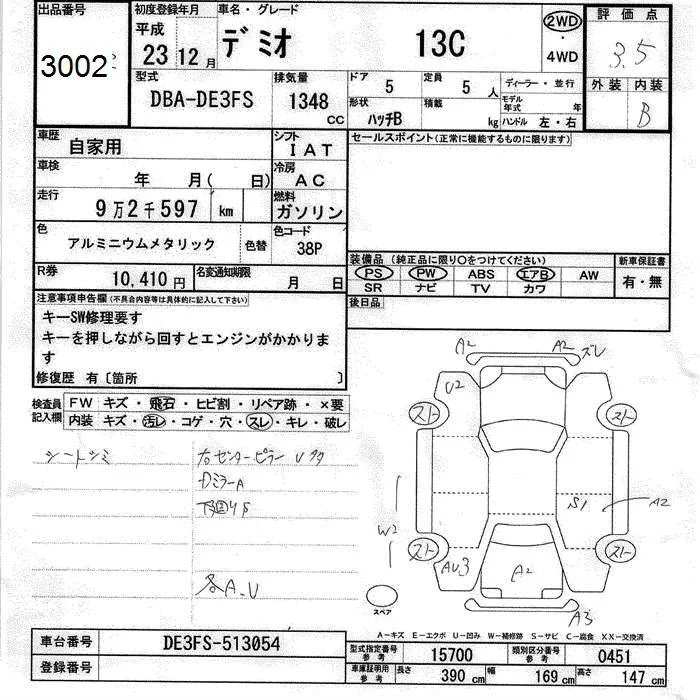 Mazda DEMIO с аукциона Японии JU Toyama лот № 3002