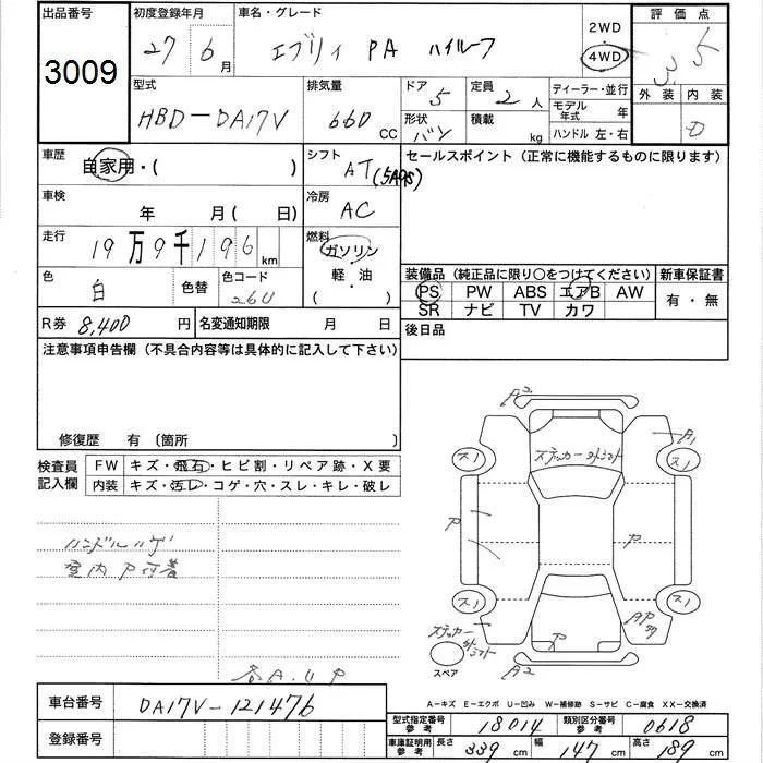 Suzuki EVERY с аукциона Японии JU Toyama лот № 3009