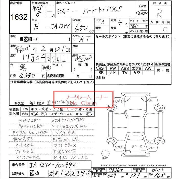 Suzuki JIMNY с аукциона Японии JU Toyama лот № 1632
