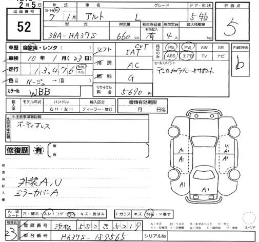 Suzuki ALTO с аукциона Японии SUZUKI AA Hamamatsu лот № 52