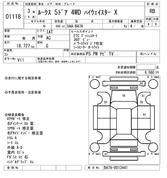 Nissan ROOX с аукциона Японии ARAI Oyama лот № 1118