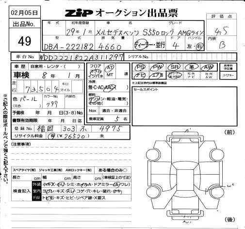 Mercedes-Benz S CLASS с аукциона Японии ZIP Osaka лот № 49