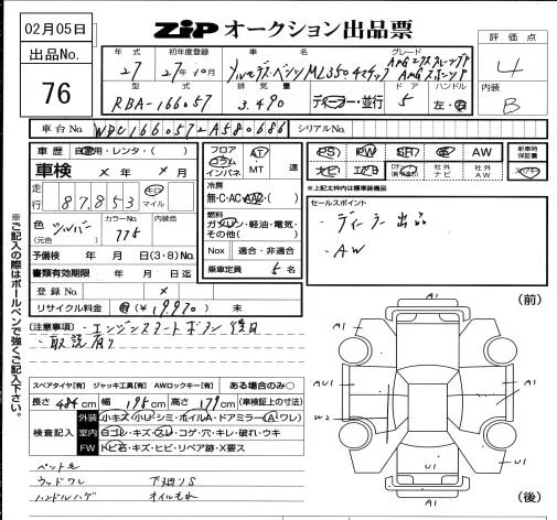 Mercedes-Benz ML CLASS с аукциона Японии ZIP Osaka лот № 76