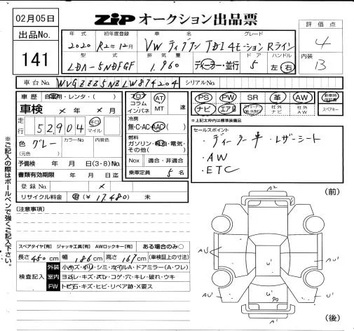 Volkswagen TIGUAN с аукциона Японии ZIP Osaka лот № 141