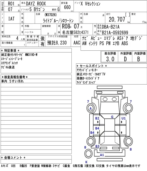 Nissan DAYZ ROOX с аукциона Японии NAA Nagoya лот № 3009