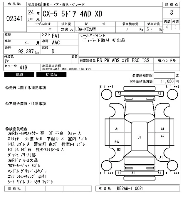 Mazda CX-5 с аукциона Японии ARAI Bayside лот № 2341