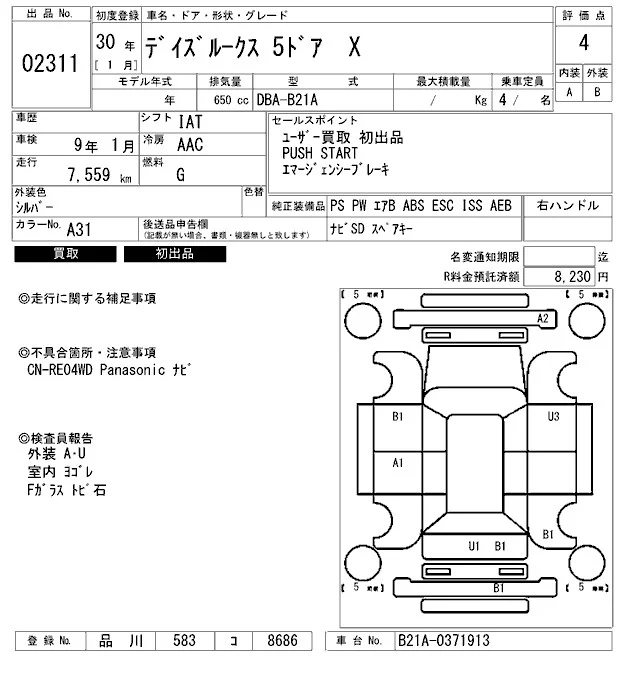 Nissan DAYZ ROOX с аукциона Японии ARAI Bayside лот № 2311